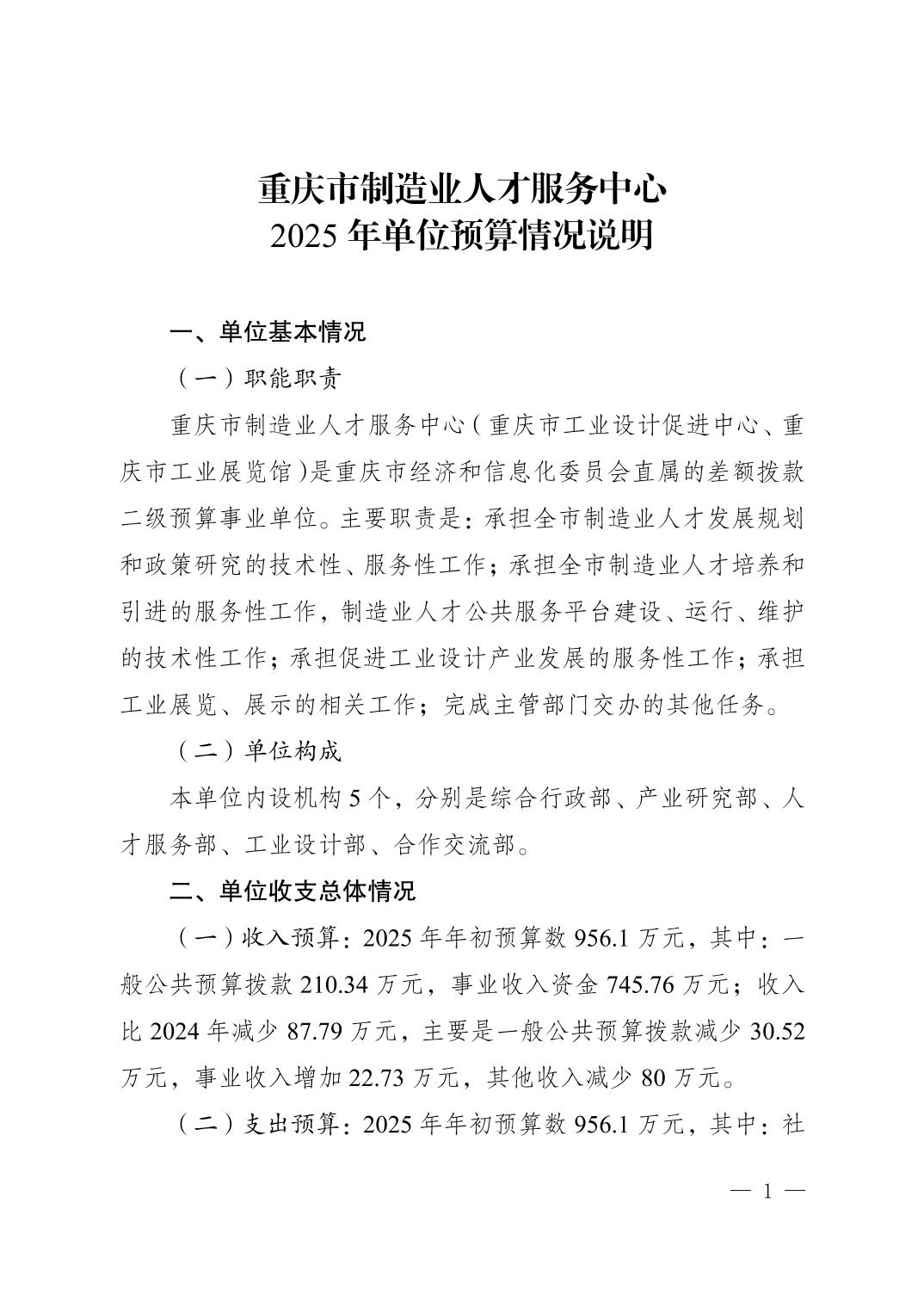 重庆市制造业人才服务中心2025年单位预算情况说明.pdf